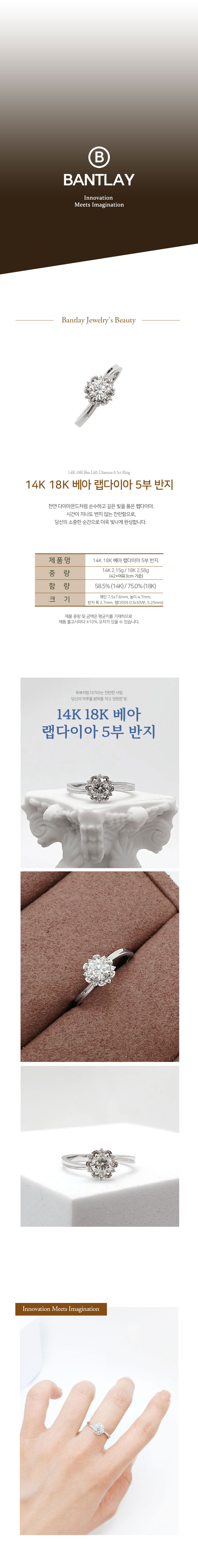 14K 18K 베아 랩다이아 5부 반지