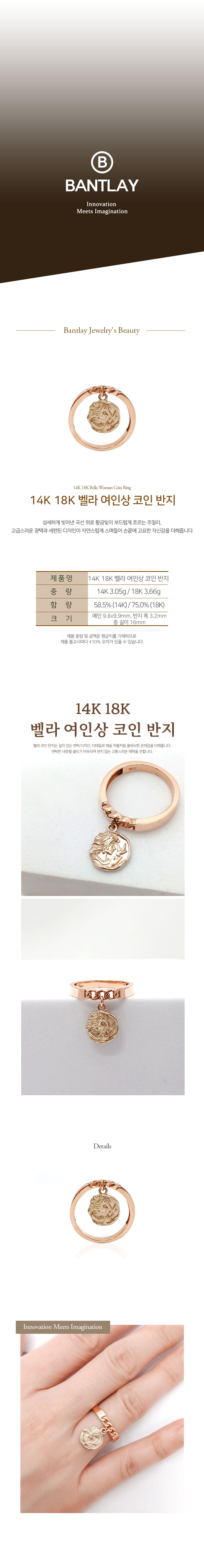 14K 18K 벨라 여인상 코인 반지