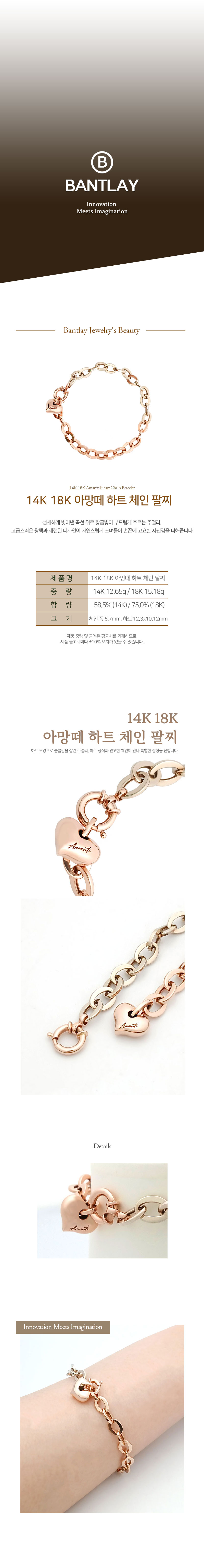14K 18K 아망떼 하트 체인 팔찌